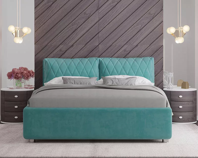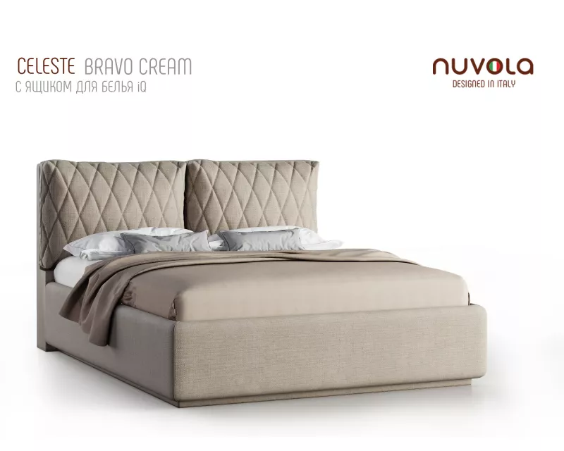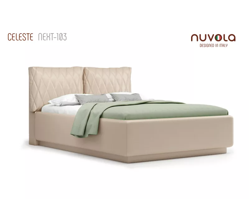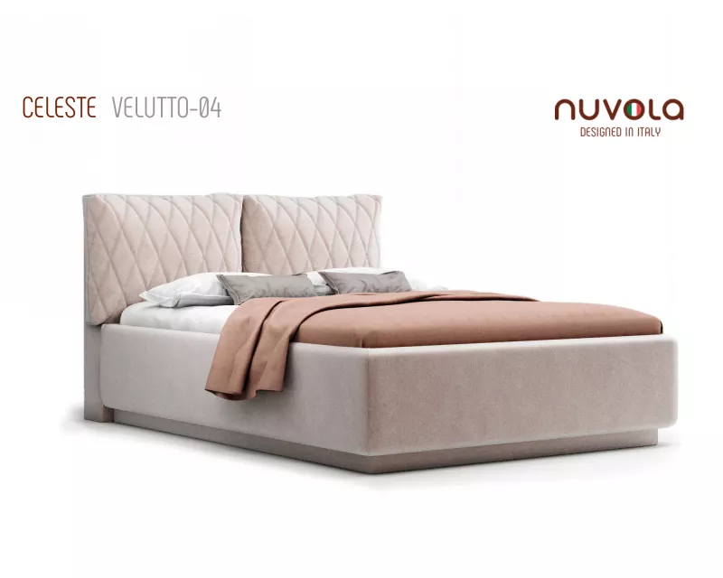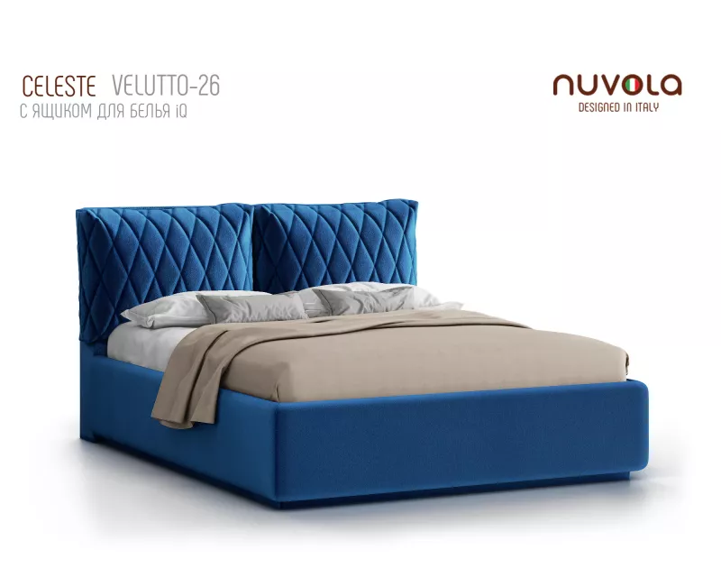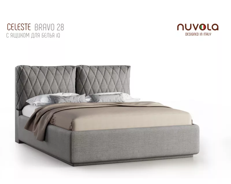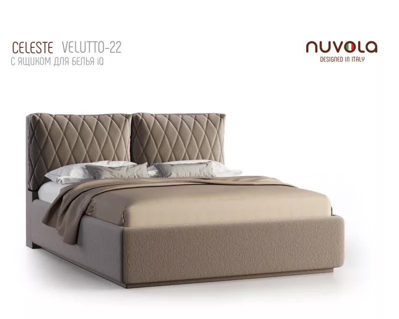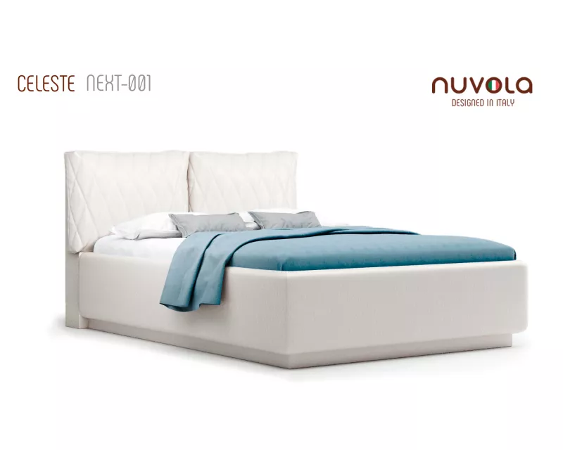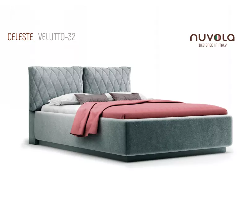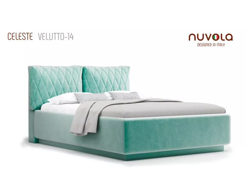 Модель Celeste от Nuvola — современная интерьерная кровать с оригинальным мягким изголовьем, декорированным двумя объемными подушками**, которые с легкостью можно отстегнуть от изголовья для перемещения или приподнять на матрас для изменения угла наклона подушки — высокий уровень комфорта и поддержка спины во время чтения книг, просмотра любимых фильмов или работы за ноутбуком!